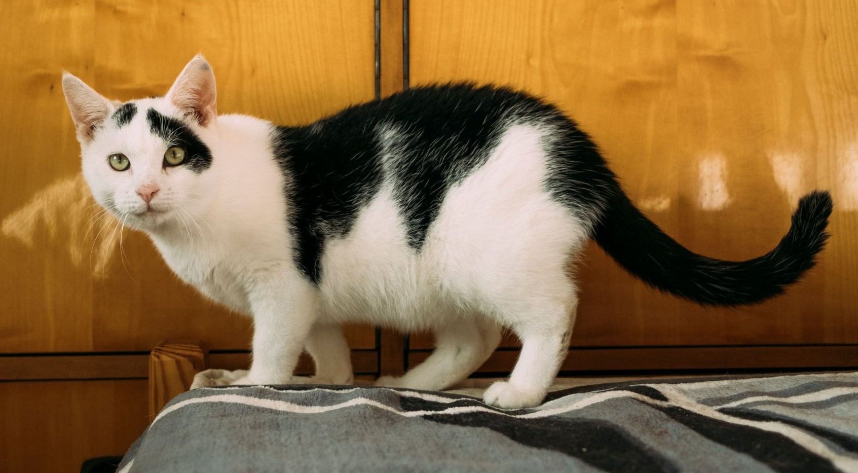 Trafił do nas wraz ze swoją siostrą Sisi na zabieg kastracji. Rodzeństwo miało mieć dom, niestety jednak chętni na adopcje zmienili zdanie. Cezar mieszka więc w naszej kociarni. Dobrze dogaduje się z innymi kotami, kocha się bawić i jest ciekawy wszystkiego.