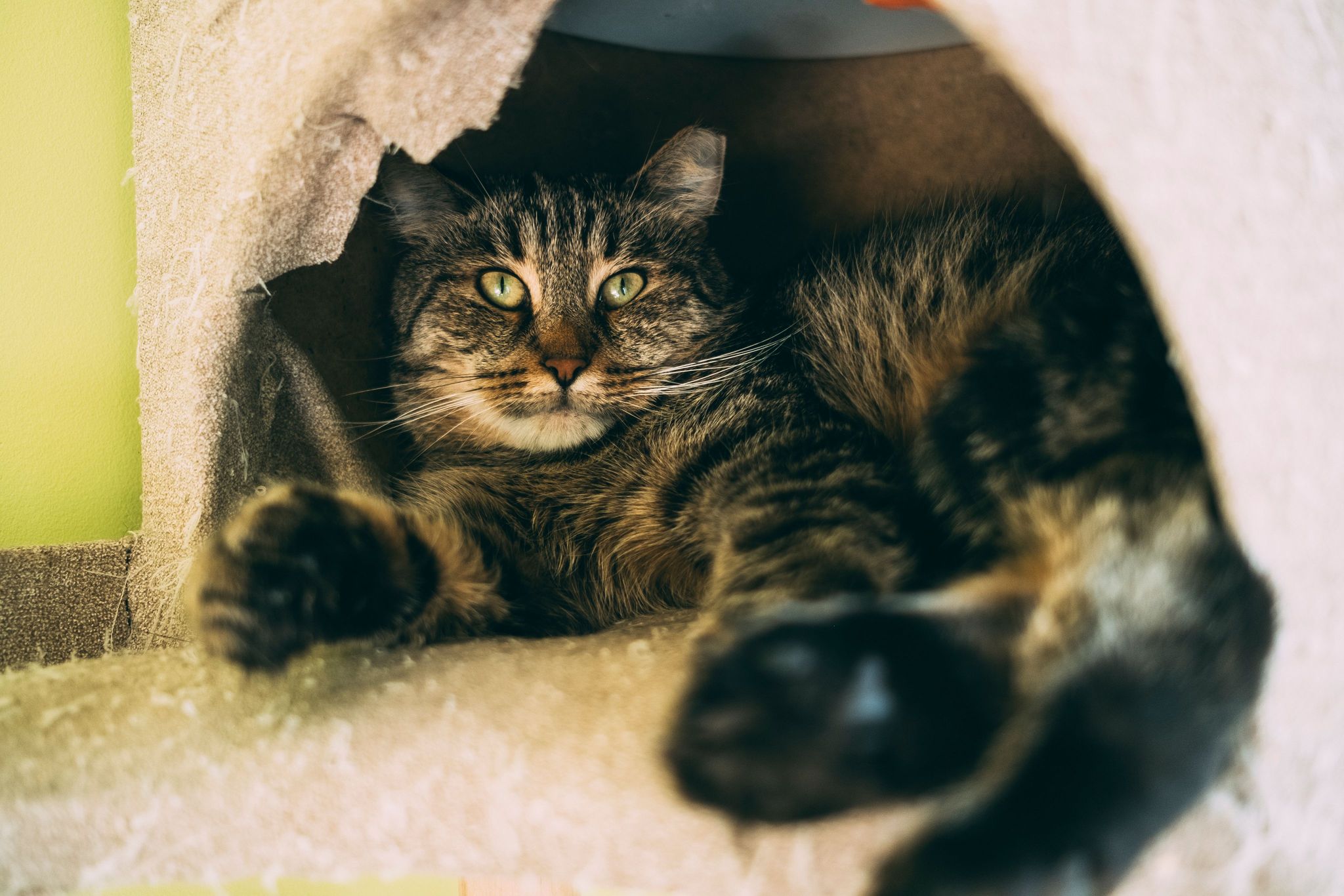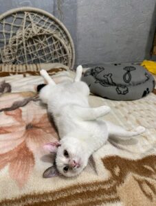 Przebywa w naszej kociarni już od kilku miesięcy. Coraz bardziej przekonuje się do ludzi, a z innymi kotami dobrze się dogaduje i lubi ich towarzystwo.