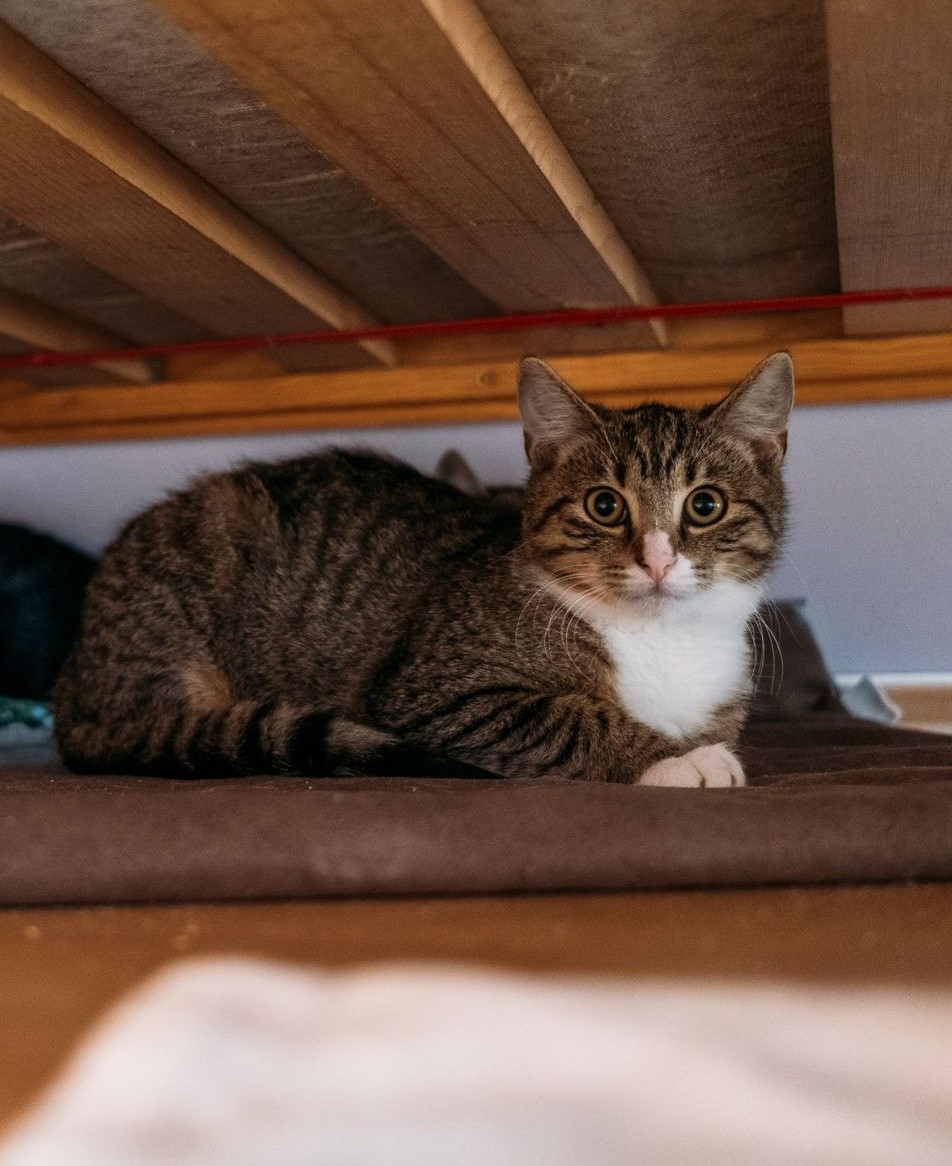 Do świata podchodzi z dystansem ale też ciekawością. Jego ulubionym zajęciem jest obserwowanie codziennych porządków w kociarni – gdyby potrafił, pewnie zacząłby pomagać.
